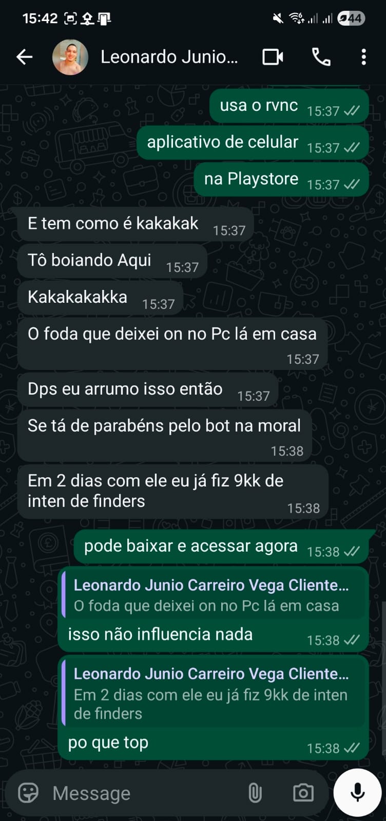 Se tá de parabéns pelo bot na moral. Em 2 dias com ele eu já fiz 9kk de item de finders.